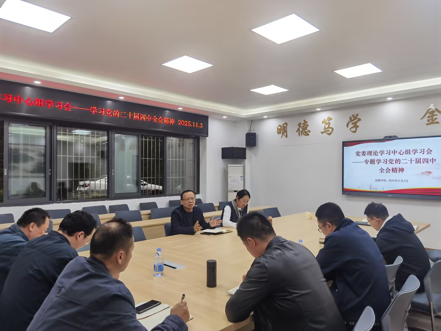 11月3日,taptap点点体育党委理论学习中心组召开学习会深入学习党的二十届四中全会精神,学院党委委员、班子成员参会。