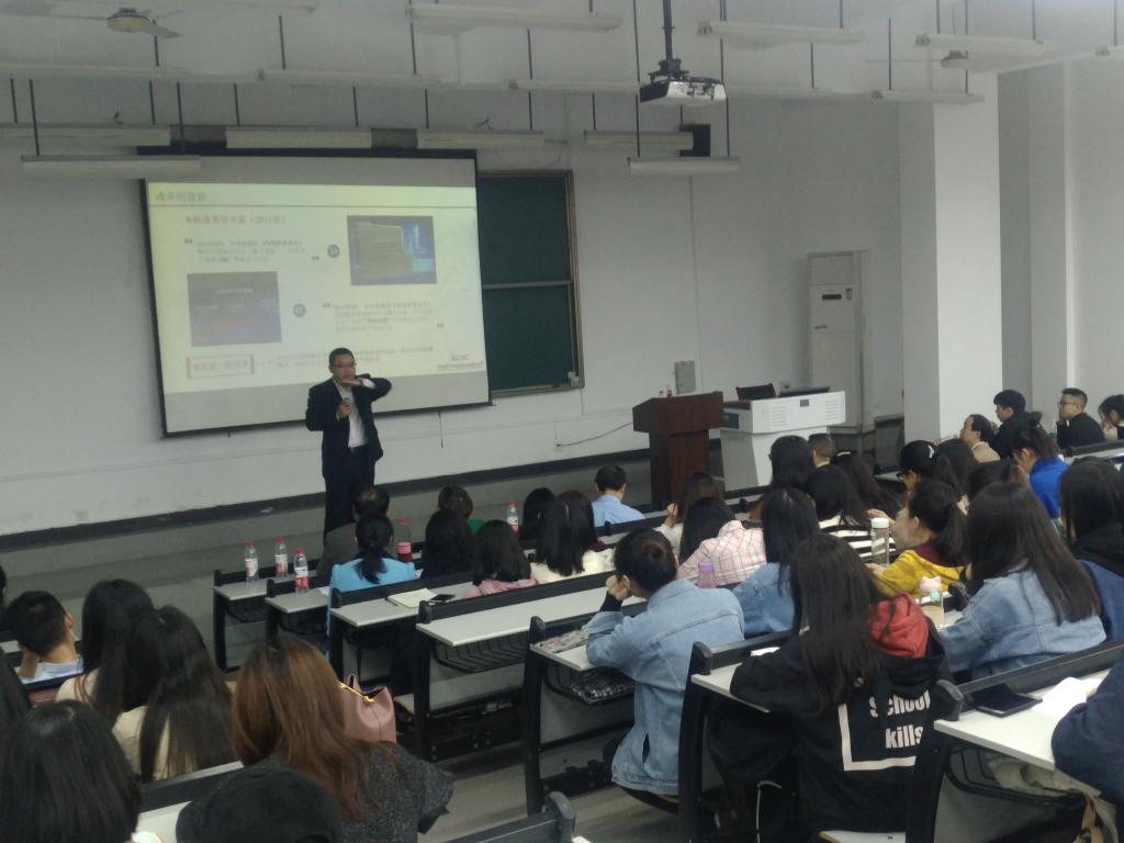 2018年11月2日下午,taptap点点体育官网邀请保险业兼职教授在艺术楼101室举办了“保险高管大讲堂”讲座,为保险学专业大二到大四年级的约250名本科生,以及保险专业方向研究生进行了保险行业发展的专题讲座。