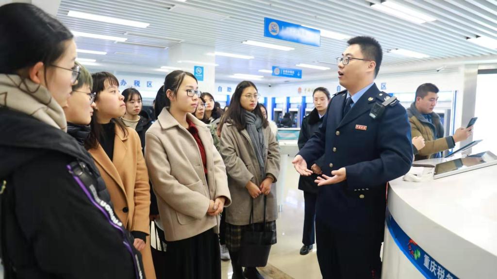 为了加强税收理论与实践融合教学,2019年12月26日下午,我校财政taptap点点体育组织2019级16名税务硕士走进重庆市南岸区税务局办税服务厅,开展了一次以学习大数据办税为主题的移动课堂。