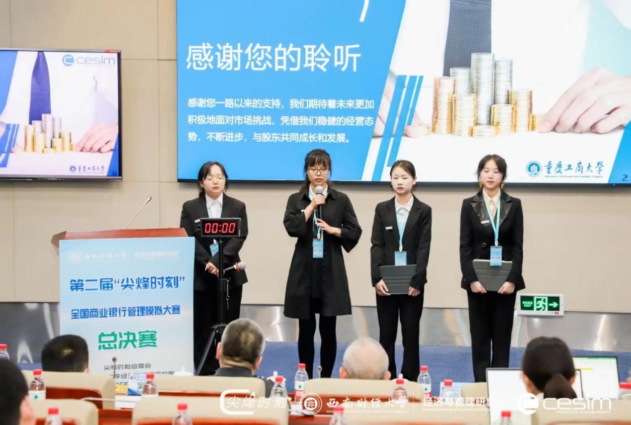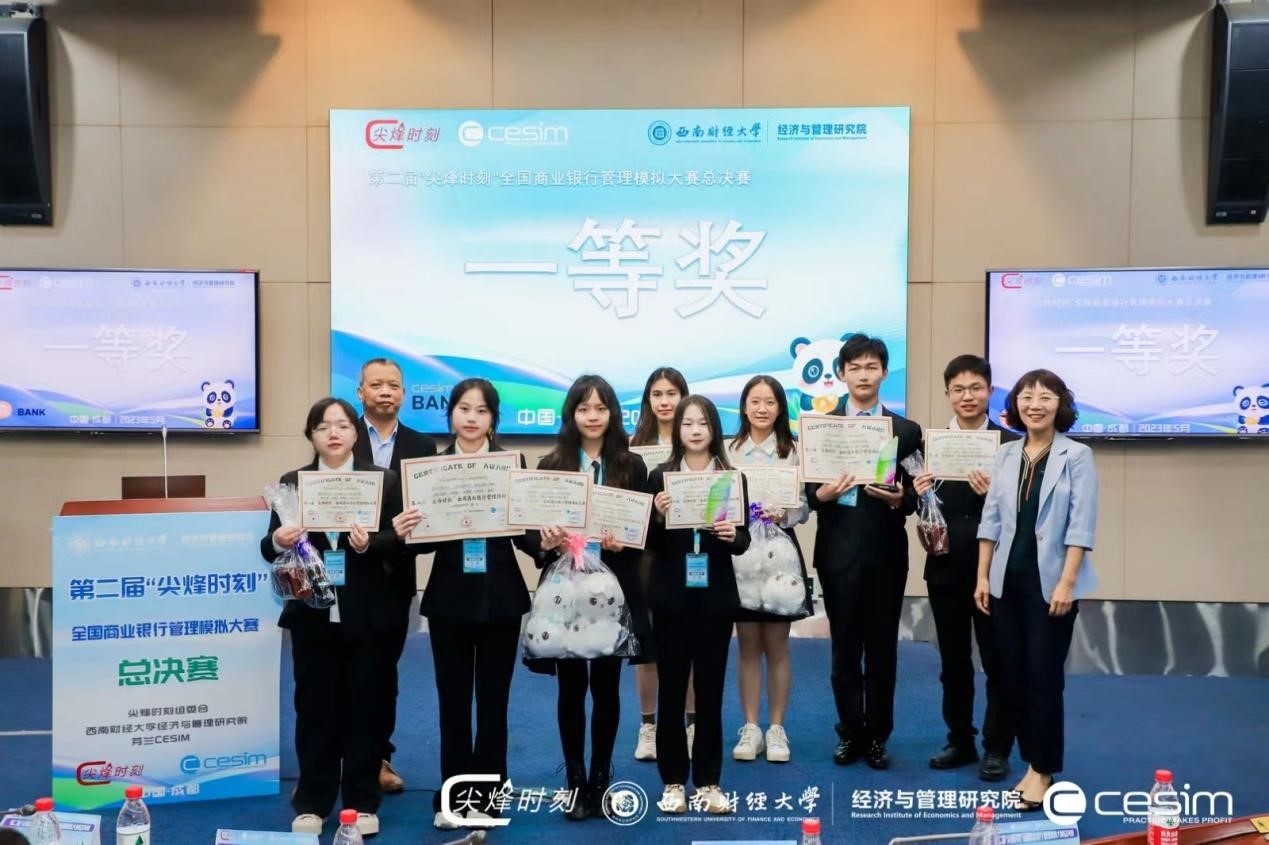 2023年5月19日-2023年5月21日,第二届“尖烽时刻”全国商业银行管理模拟大赛总决赛在西南财经大学举办。本次比赛参与面广,有近40所院校近120支团队参加初赛,经过激烈角逐,来自17所院校的20支团队进入总决赛。taptap点点体育官网20投资一班肖瑞琳、20金融一班李骁啸、21金融工程一班任彬瑜、20CFA1班曾玲在唐平老师的指导下入围总决赛并荣获全国一等奖。