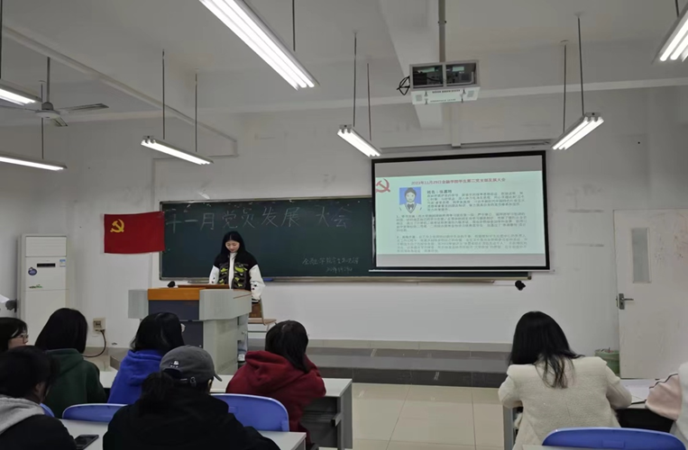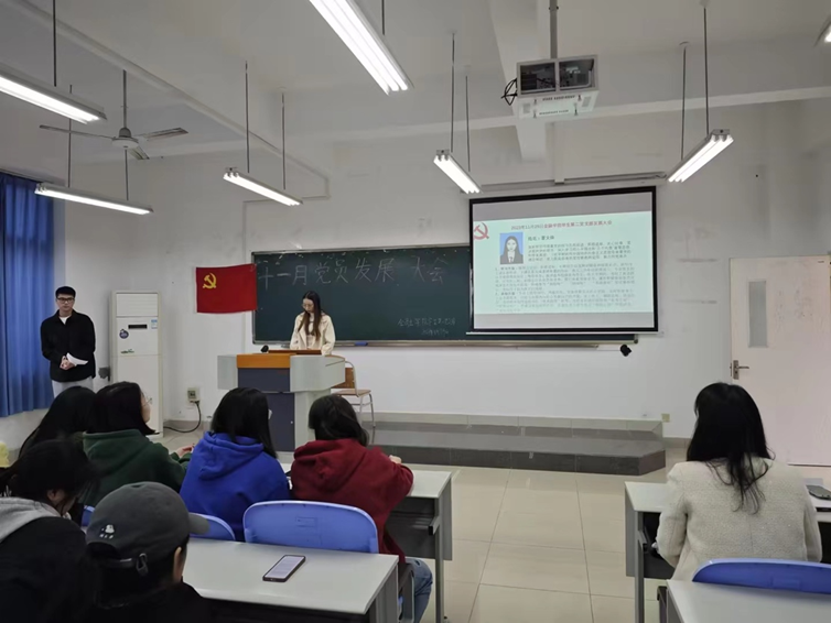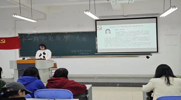 其次,由徐炀,袁菲这两名预备党员,戴诗荞,曹文焕等六名党员发展对象依次上台发表演讲,分别介绍了自己对党的理解和对未来党员生活的期盼。他们表示,加入中国共产党是他们对党的认同和信仰的体现,也是对自己人生价值的追求。他们将继续努力学习、工作和生活,不断提高自己的政治素养和综合素质,为党和人民的事业贡献自己的力量。并且由在场党员和预备党员进行投票选举,是否同意其成为正式/预备党员,最终所有成员全票通过。